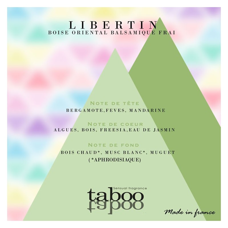Taboo pour homme est un parfum d'attirance aux notes délicates qui vous permettrons de faire des rencontres irresistible et de devenir libertin ... Ce parfum élaboré à Grasse la capitale par excellence de tous les parfums français, mélange odeur sensuelle et suave.