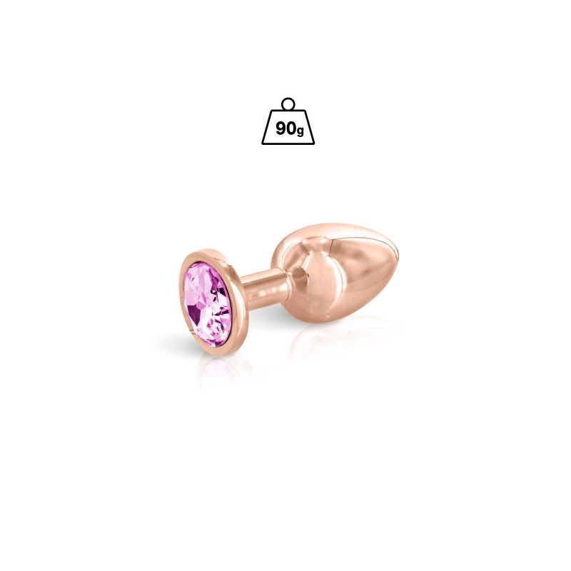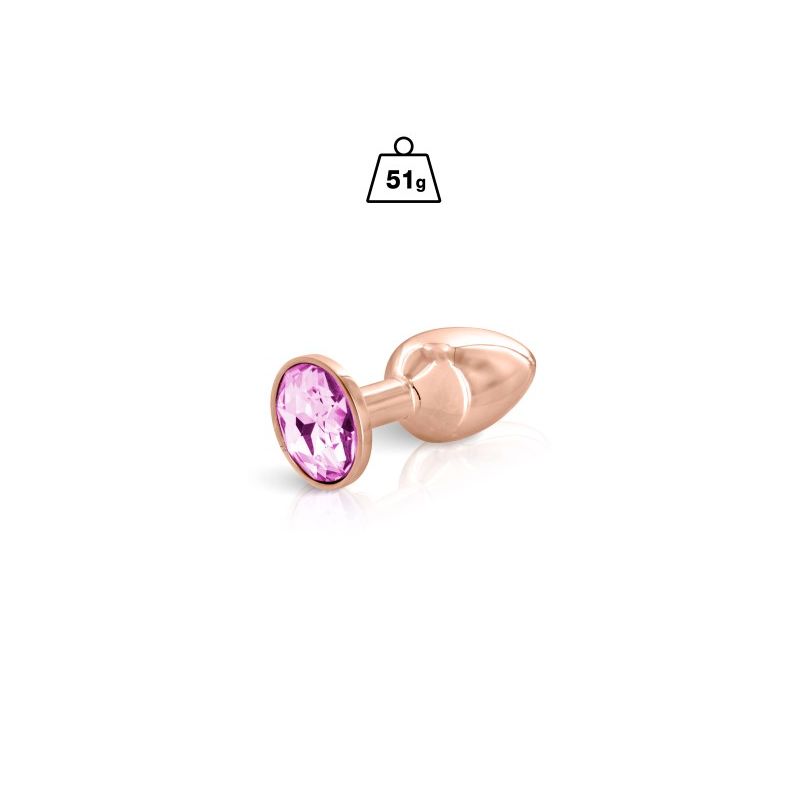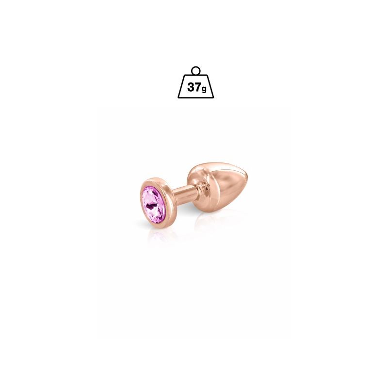 Le côté chic de ce plug anal doré vient de sa terminaison sublimée d'un bijou rose.