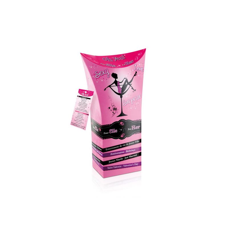 Contient : 1 sextoy femme, 1 lingerie sexy, 1 jeu coquin, 1 crème plaisir, 1 gadget humoristique + 1 surprise. Emballage soigné.