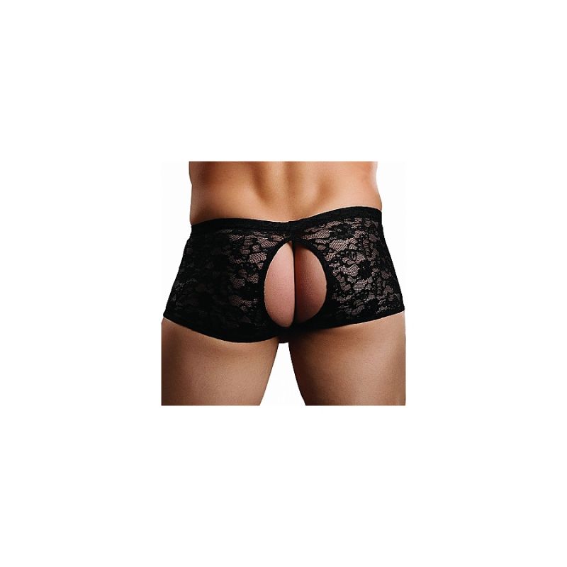 Ce sous-vêtement sexy est un boxer bottomless en dentelle conçu avec :