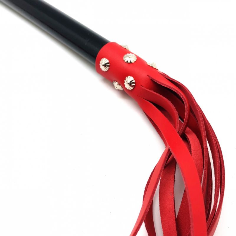 Martinet long Lanières en cuir et Manche en bois 80cm Rouge