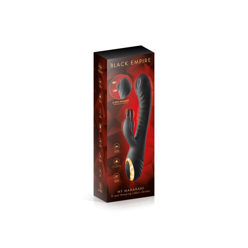 Une forme et un design de toute beauté alliant l'élégance à la performance. Doté de 3 moteurs, My Maharani vous propose 10 modes vibrations et 7 modes de pulsations. Son petit rabbit vibrera sur le clitoris tandis que le bout du vibromasseur massera le point G grâce à des pulsations de va et vient !
