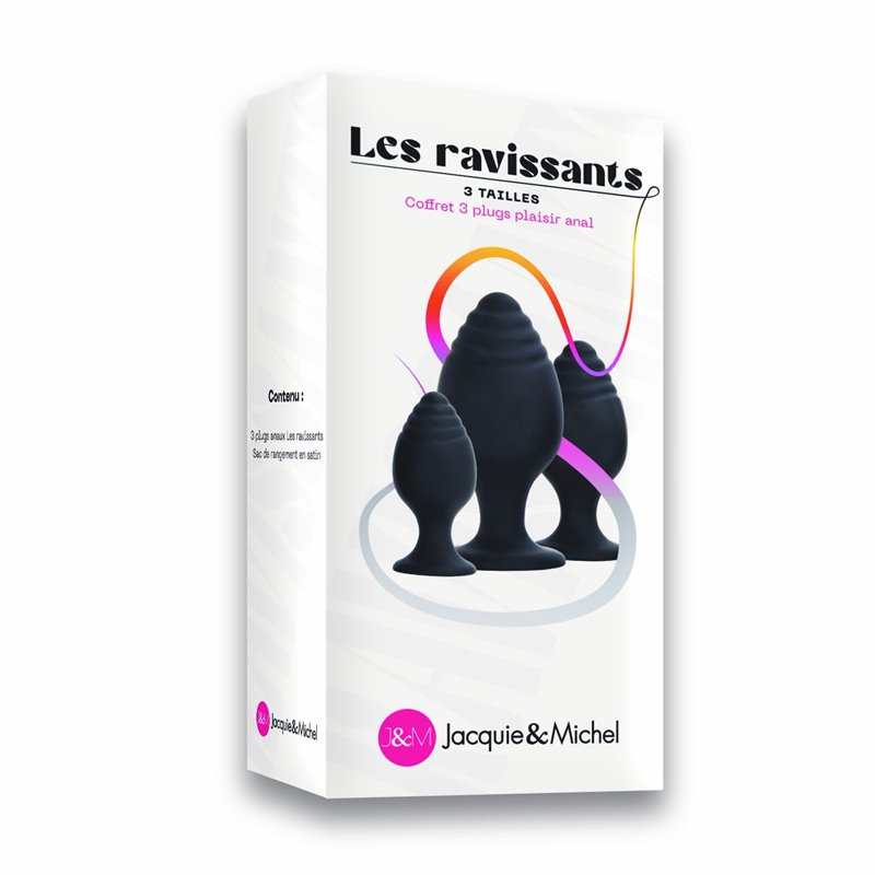 "Les ravissants", de la marque Jacquie et Michel sont 1 set de 3 plugs noirs de tailles différentes, permettant de s'initier en douceur au plaisir anal, ou tout simplement de varier les plaisirs en fonction du moment.