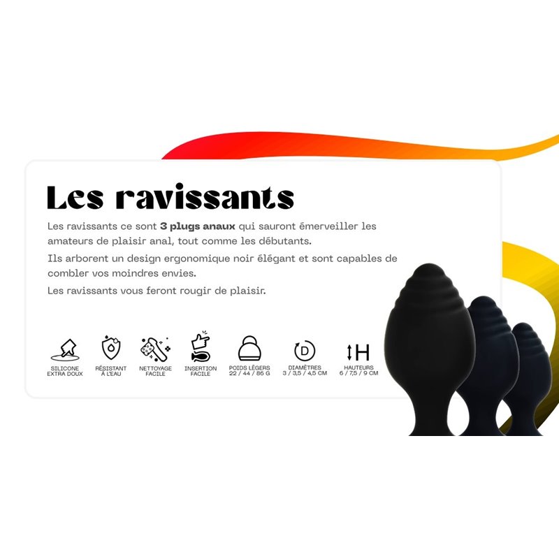 Les ravissants ce sont 3 plugs anaux qui sauront émerveiller les amateurs de plaisir anal, tout comme les débutants.