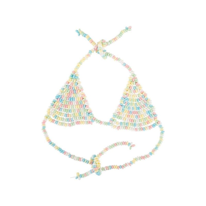 Ce soutien gorge comestible nous rappelle notre enfance avec les colliers de bonbons.