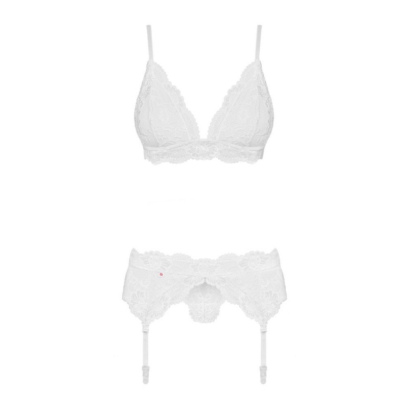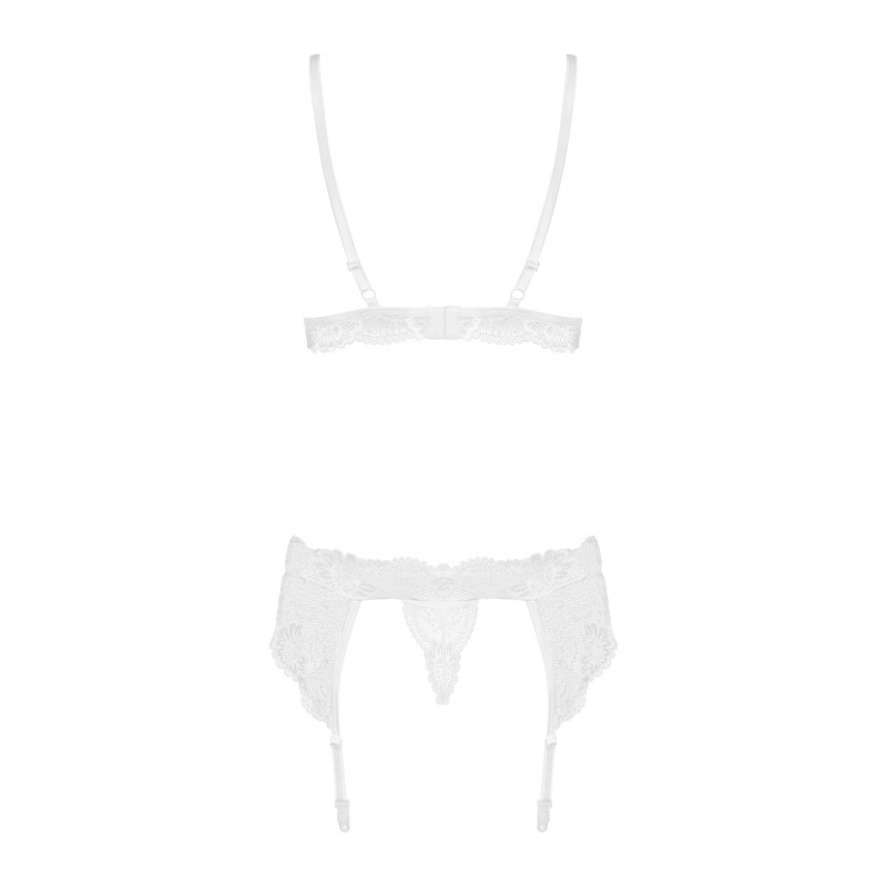 Captive et stimule les sens. Apporte élégance et confiance en soi. Il met en valeur la silhouette, révélant légèrement certaines parties du corps. Ce sont tous les avantages du set Blanche Neige 810-SEG-2. Le soutien-gorge délicat et sensuel dévoile parfaitement la poitrine et le séduisant porte-jarretelles avec string souligne très bien les hanches et les fesses. En combinaison avec les collants assortis, ce sera une tenue parfaite et tentante pour de nombreuses occasions.