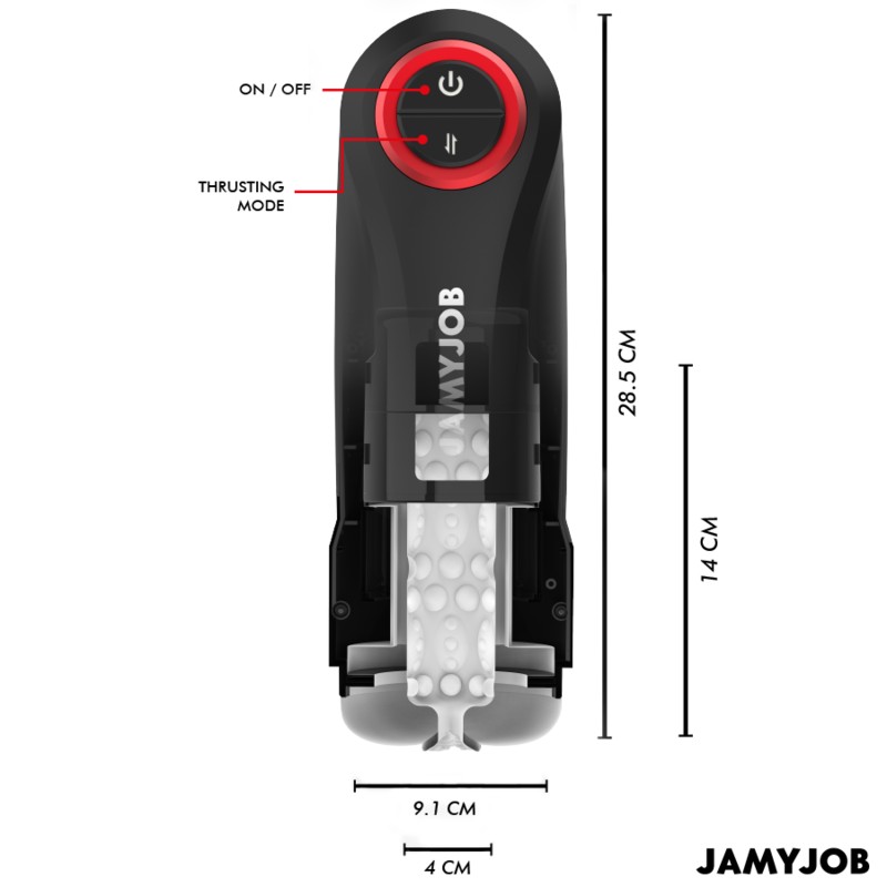 Le masturbateur automatique pour homme GRAVITY de la marque JAMYJOB est un appareil innovant et élégant, conçu pour offrir une expérience stimulante et agréable de haute qualité. Avec un design noir qui se distingue par ses détails rouges, ce masturbateur allie esthétique et fonctionnalité dans un seul produit.