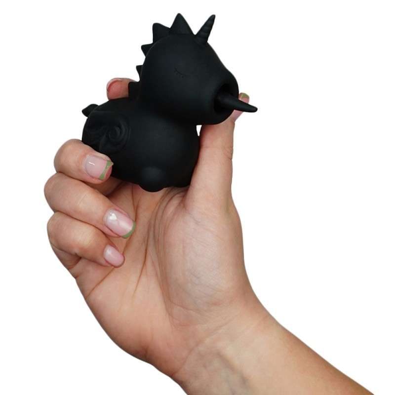 Mignon vibromasseur à poser Wild Spirit d'Unihorn en forme de petite licorne. Le jouet en silicone doux et maniable gâte intensément avec ses vibrations et sa longue langue tourbillonnante douce dans la bouche ouverte. Le double moteur de luxe assure une puissance fiable. Une simple pression sur un bouton permet de commander séparément 10 modes différents de vibrations et de mouvements de la langue. Un jouet magique pour des jeux variés - seul ou à deux - à la maison ou en voyage !
