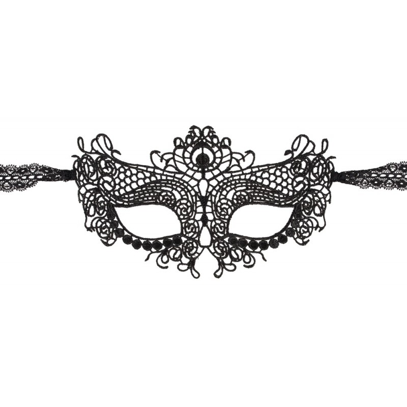 Magnifique masque fait de délicates broderies élaborées. Avec des ouvertures pour les yeux. Le ruban de dentelle est noué à l'arrière de la tête.