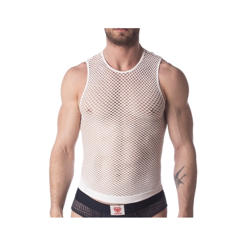 Le débardeur filet STEFANO Blanc de la marque Barcode Berlin est un haut sexy masculin spécialement conçu pour les hommes recherchant un équilibre parfait entre élégance et confort.