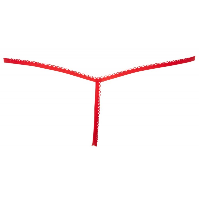 Ficelle rouge en forme de cadeau, faite de velours de panne doux et caressant, avec des rubans de satin blanc.