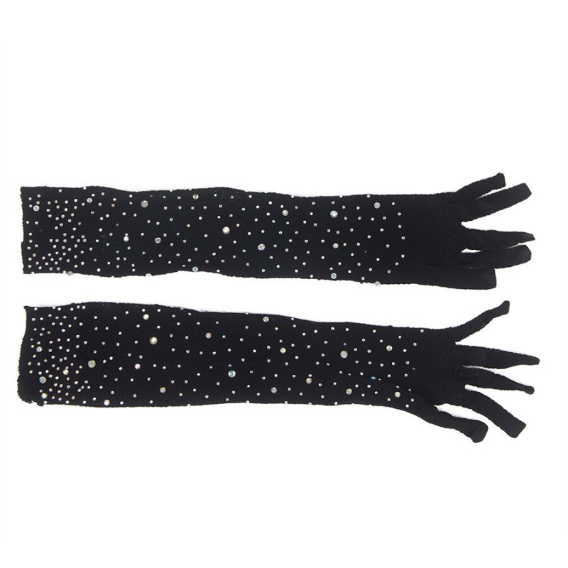 Le détail le plus frappant de ces gants est leur finition avec des paillettes et des applications fantaisie en diamant, qui capturent la lumière et ajoutent une touche de luxe et de magnétisme. Idéals pour les occasions spéciales, ces gants apportent un air de mystère et d'élégance qui complète parfaitement les tenues séduisantes ou les looks haute couture.