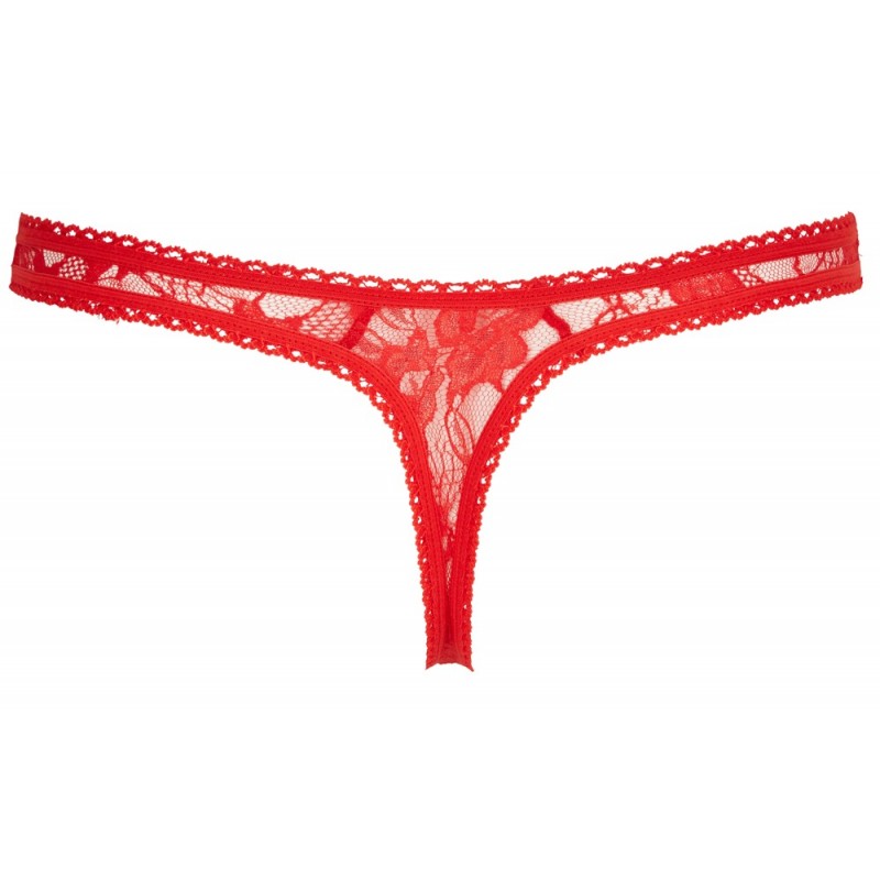Délicieuse ficelle de dentelle florale avec un entrejambe ouvert invitant.