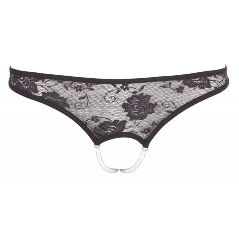 Délicat cordon en dentelle florale avec collier de perles à double rangée à l'entrejambe ouvert. Agréablement élastique et parfaitement adapté.