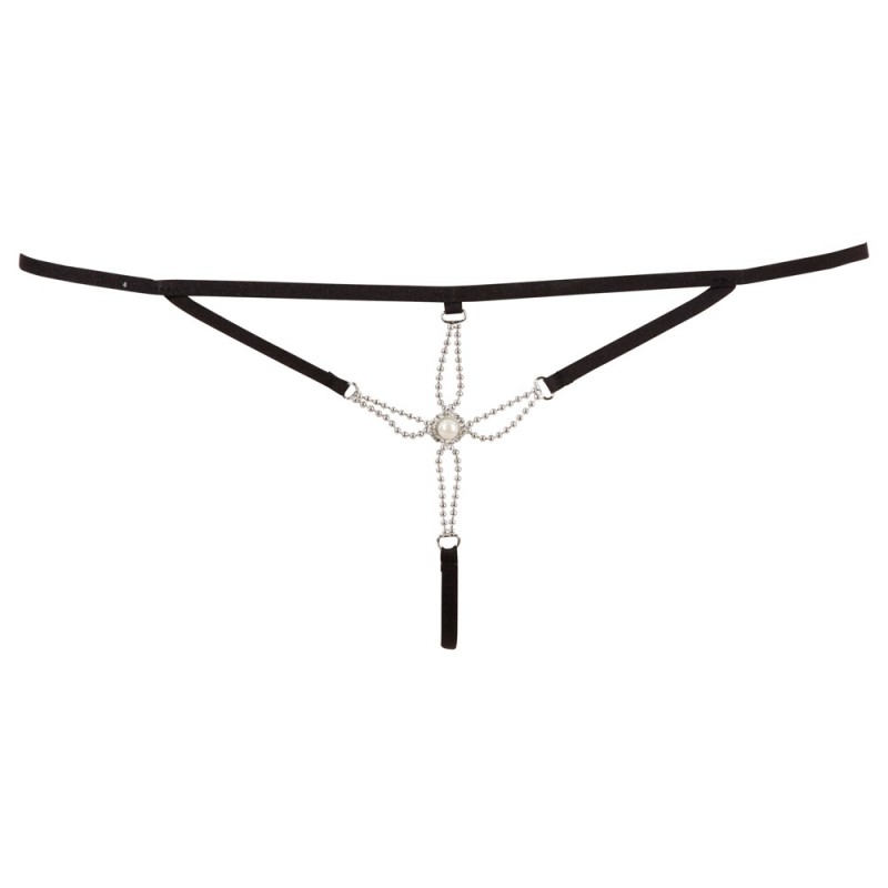 Un string excitant en forme de lanière avec une décoration de perles élaborée sur le pubis ouvert.